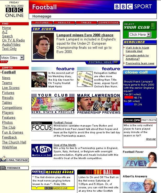 I cut my web production teeth on the BBC's flagship Sports website in 2000, having written for BBC radio and television during the late 1990s.