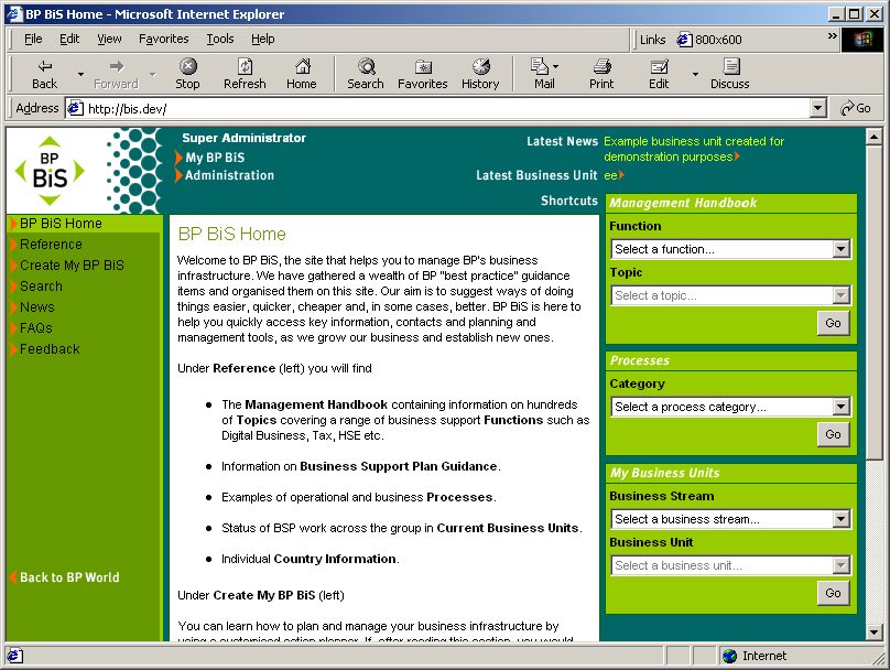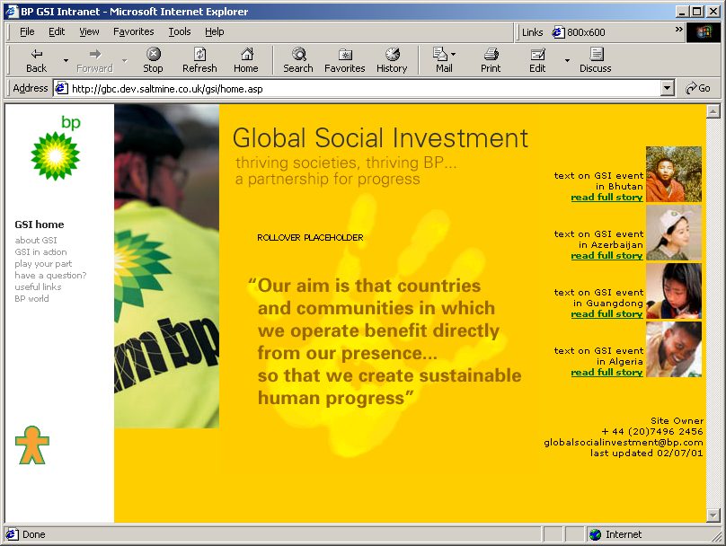 The following year, as part of the next major update, I implemented the W3C XHTML 1.0 standard across the BP projects I worked on - again, almost certainly a world-first among major corporations.