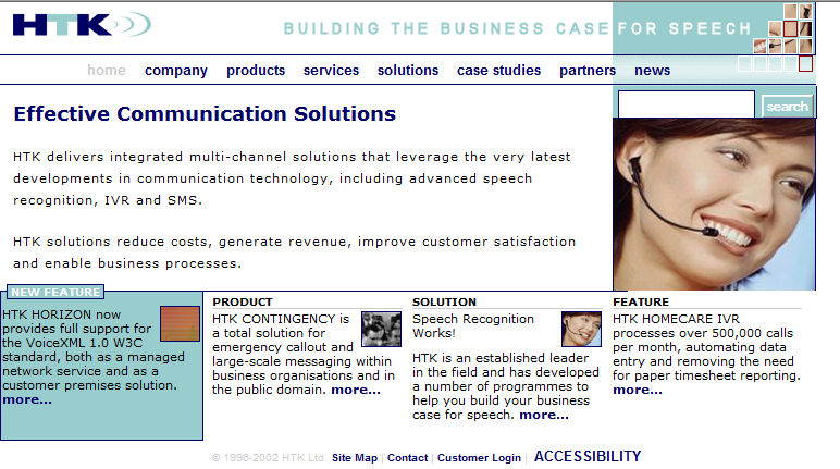 As early as 2002, the HTK website achieved WAI-AAA levels of accessibility, and various iterations of the site allowed me to experiment with DHTML and Flash animations, such as this example from the 2008 HTK home page.