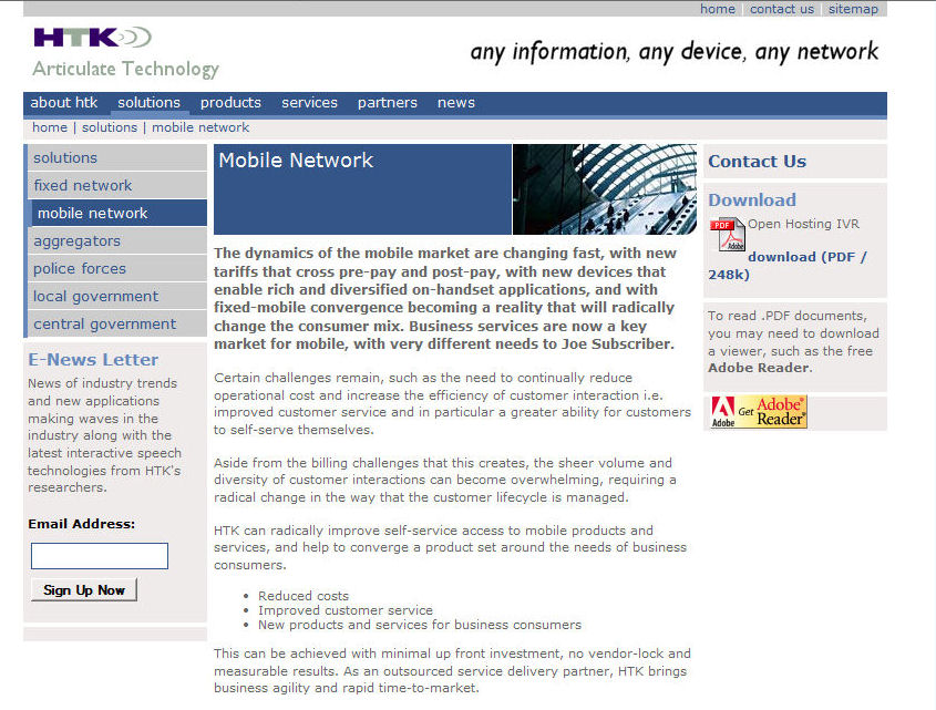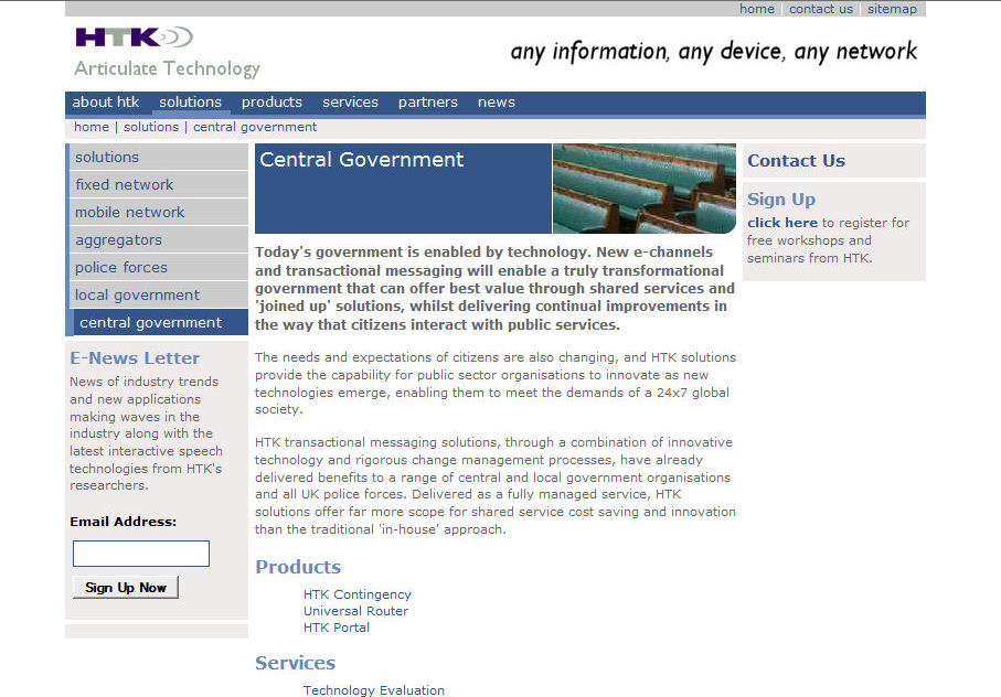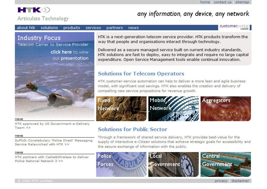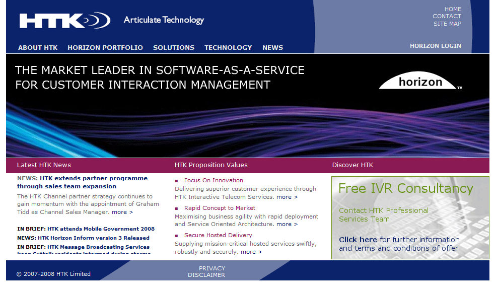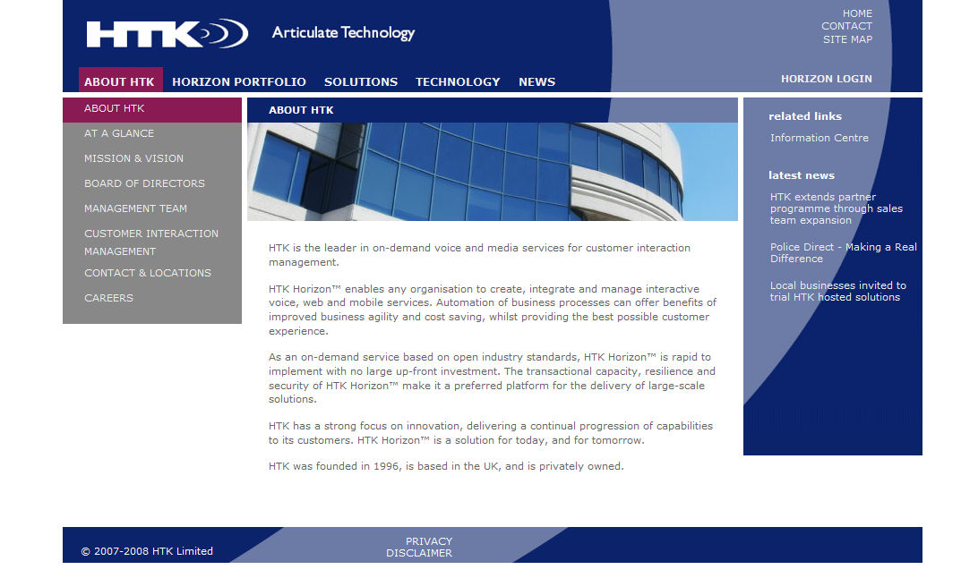While working at HTK, I was responsible for producing a variety of online and printed materials, including the company web site, the customer intranet, magazine advertisments and CD labels and covermounts.